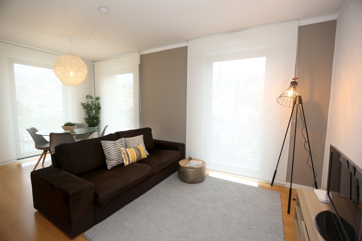 Enjoy one of the best views in town from your own private terrace. Located in Graça the apartament has an upper floor w/ double bedroom and private ensuite bathroom, a ground floor w/ twin bedroom, bathroom, living room, open plan dining room and kitchen and terrace. Free wifi, fireplace and air conditioning. Totaly renovated in January 19. Cable TV, wifi , air conditioning and heating and amenities provided.