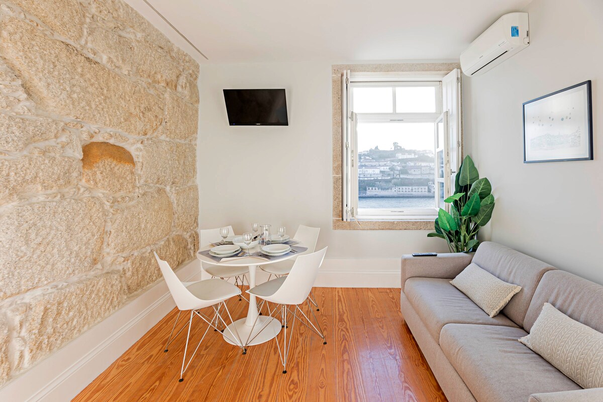 Welcome to your tranquil sanctuary overlooking the mesmerizing Douro River. This charming 1 bedroom apartment seamlessly combines comfort and elegance, promising a delightful stay. Discover serenity in the cozy bedroom, featuring a plush queen-sized bed adorned with soft linens, offering you a peaceful haven after a day of exploration. The well-appointed kitchen invites culinary adventures with modern appliances, ensuring your cooking endeavors are a breeze.
