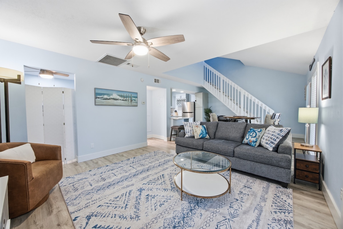 The Coastal Cabin is a recently renovated 1BR/1BA townhome just a 4‑minute walk to the beach in the Sea Cabins community of Miramar Beach, Fl. It sleeps up to 6 with a king bed, full bed, and queen sleeper sofa. Enjoy private gated beach access, seasonal beach chair and umbrella service (March–October), a community pool, modern coastal design, in‑unit washer/dryer, free parking, WiFi, and a private patio-ideal for a relaxed Emerald Coast escape. *Note open space, no doors for rooms