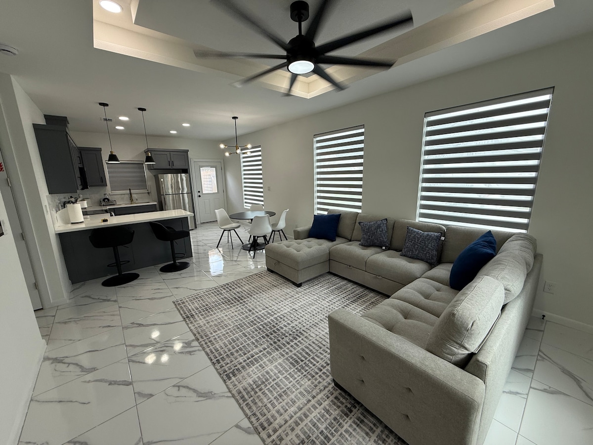 Feel at home in this clean and luxurious property with high-quality furniture, sheets, pillows, and mattresses. The kitchen comes fully loaded with cookware, dining ware, utensils, and anything else you may need to cook except the ingredients! You can also enjoy the state-of-the-art whole-house water filtration system. You will instantly notice the difference the second you step in the shower. The property is about 10 minutes away from the main shopping centers and the airport. Enjoy your stay!