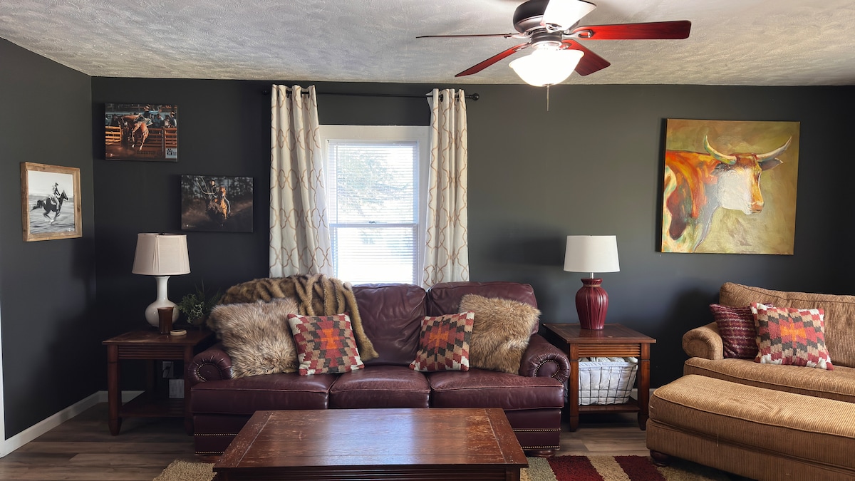Welcome to your charming Western getaway! This cozy two-bedroom, one-bath ranch home isn’t just any farmhouse—it’s the very home where the reality TV show “Farmer Wants a Wife” season 2 was filmed. Nestled on a working ranch, this little white farmhouse is full of character, history, and a whole lot of Western flair. Outside, you’ll find a spacious backyard shaded by a historic tree. Relax on the swing beneath its branches, or spend time with the friendly miniature donkeys, horses, and cattle.