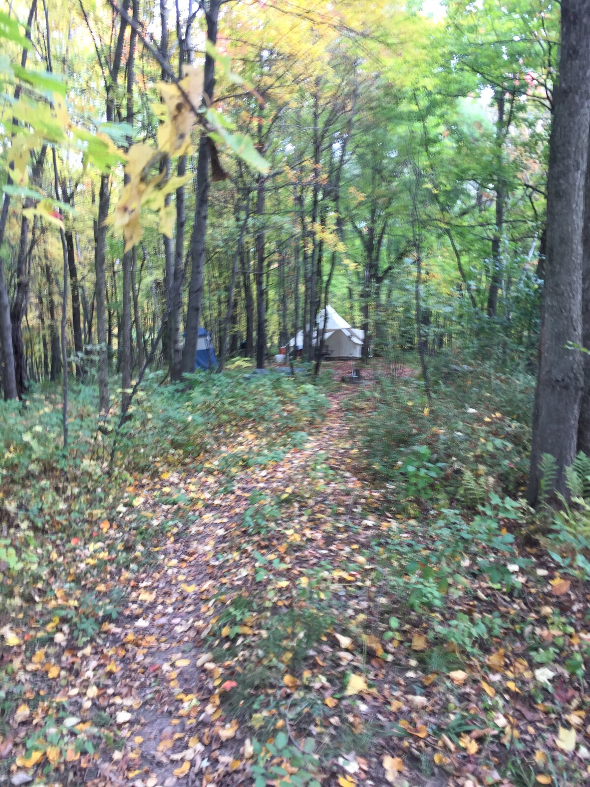 Rustic camping in the Driftless Region on the top of a bluff in a 20ft. Bell Tent. Relax, without having to pack, set up camp, and tear down and put away when you get home, more time to do things you enjoy. Go trout fishing, walk or ride the Omaha Trail Tunnel, Elroy- Sparta Trail, or the 400 Trail. Necedah Wildlife Refuge, Buckhorn, Castle Rock, Wisconsin Dells, Amish scenic drive, and Wildcat State Park with canoeing down the Kickapoo River are all within 30 minutes.
