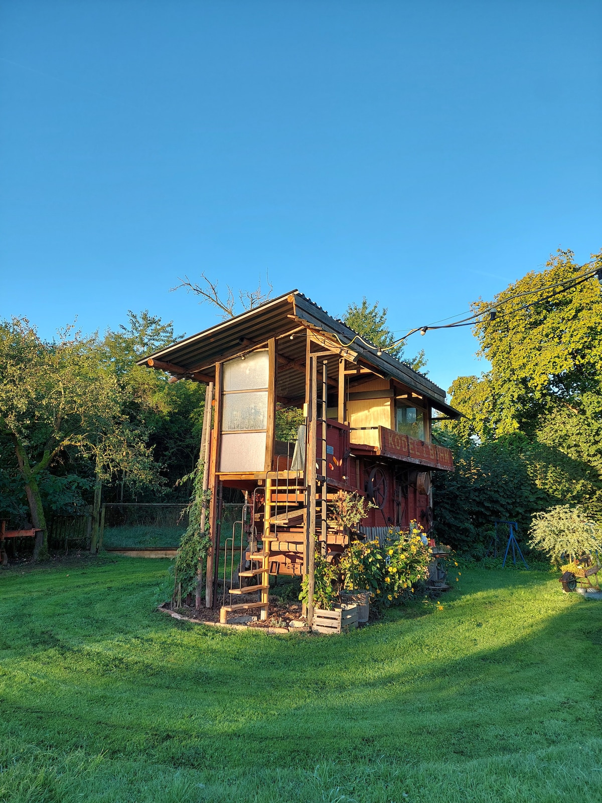 You can experience a very special overnight experience on our historic threshing machine. With a lot of love for detail, we have preserved this old agricultural machine from falling apart and transformed it into a cozy accommodation. The small sleeping cabin accommodates two people. Enjoy the view of the countryside and look forward to fresh eggs for breakfast!