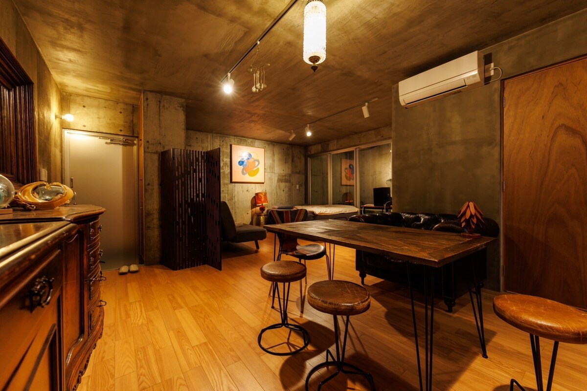 It is a very calm area while being centrally located.The interior uses tempur for chic spaces such as antique furniture and record players, so you can relax even after traveling and sea activities! We also have a washing machine and dryer with plenty of kitchen supplies, so you can enjoy short stays as well as long stays! As an option, we also rent a barbecue set that you can use on the veranda, etc., for ¥3,980!We hope you enjoy your trip! ➖Amenities➖ ~ Bedding ~ Permanent Temper double bed Temper double sofa bed As a backup TEMPER twin size futon It is also available. Apply in advance ~ Kitchen ~ Stove (2 burners) Hand soap Oil salt and pepper vinegar detergent Microwave Toaster Kettle Large refrigerator, dishes, utensils, and utensils All kinds of coffee utensils Washroom Bath towels Face towels Shampoo conditioner Body soap dryer Hair iron Toilet paper toothbrushes Comb, cotton set, razor Disposable slippers, body towels