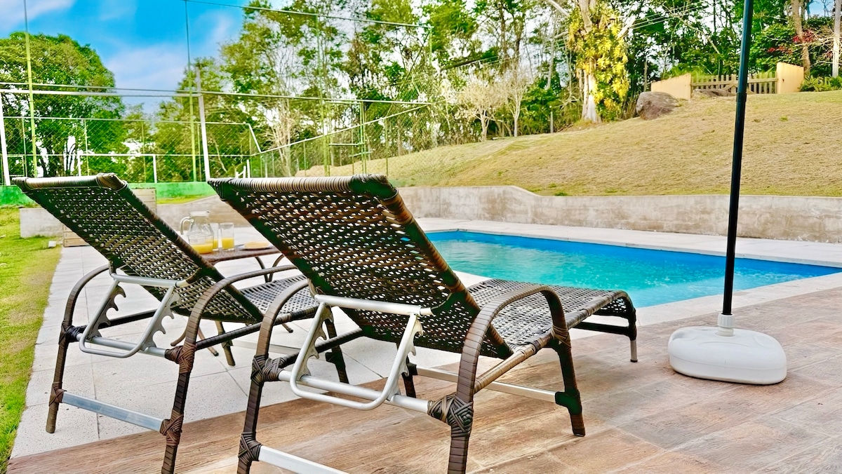 A space for an incredible experience with your friends or family, all made with a lot of love and dedication. Infinity pool Wet deck Laser barbecue area and outdoor kitchen Budwieser refrigerator Volleyball/Soccer Field 2 large en-suites 1 anteroom with exclusive bathroom Leisure area bathroom Mini Orchard and Vegetable Garden Parking for up to 10 cars Wi-Fi in the leisure area and bedrooms Sky (cable TV) Security cameras