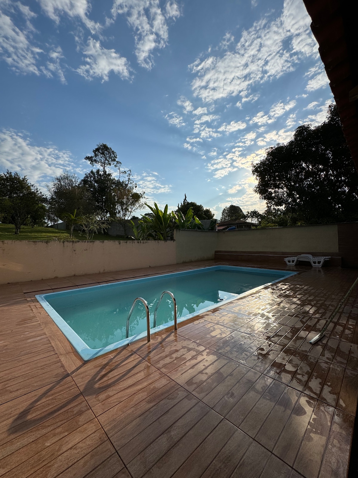 Perfect for relaxing with family, friends 🏡 Capacity for up to 15 guests 🛁 3 bathrooms and 1 toilet 🚗 6 parking spaces 🏊♀️ Large swimming pool (5x13m and 1.60m deep) 🧖♀️Dry sauna 📶 Wi-Fi and Netflix Equipped kitchen, with 2 water filters. 🥩Barbecue grill Bed and bath linens (premium quality) Fans in the bedrooms and living room 🐟Lake for sport fishing Garden with fruit trees (pitanga, acerola, etc.) Ideal environment for rest and connection with nature.