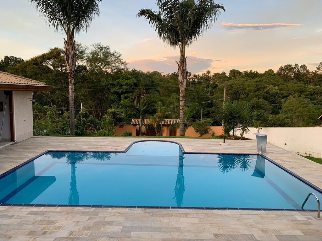 Reconnect with nature at this unforgettable escape Premium country house 40 min from SP HEATED POOL (30º), Premium double whirlpool. Cozy and accessible in a very quiet and pleasant place, with paved access. Shops, bank and market 5 minutes away Ideal for family gatherings and events Beds for 24 people Party room (quote separately) 5 suites, hydro bathtub, rooms with fireplace Large leisure area Gourmet area with barbecue Wood-burning stove and oven 600mb Wi-Fi