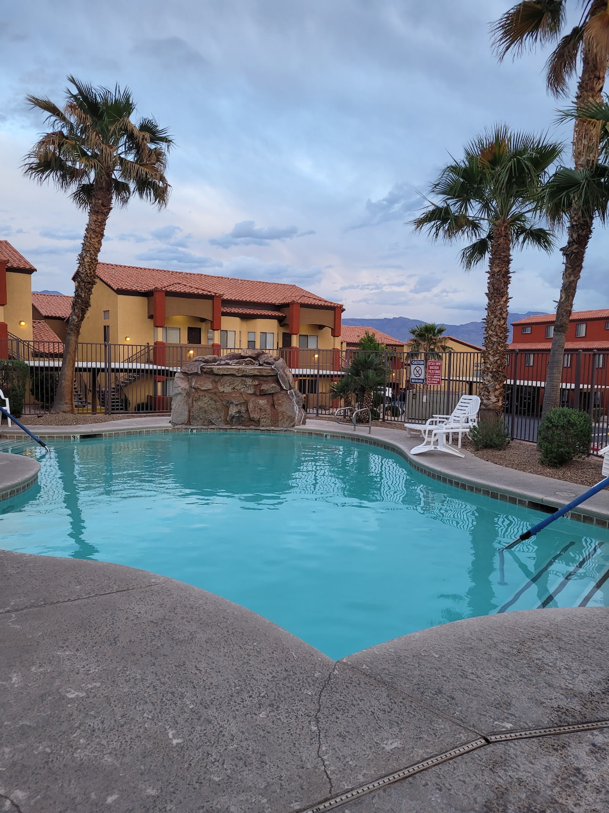 Take in some of the most stunning views of the valley with breathtaking Arizona sunsets and sunrises while overlooking the river in Laughlin. This cozy tiny house is perfect for a small family or a romantic getaway. The RV resort offers a range of amenities for you to enjoy, including a pool, Jacuzzi, gym, deli, laundry facilities, and much more! Located on a hillside, this unit provides the utmost privacy compared to any other unit in the park.
