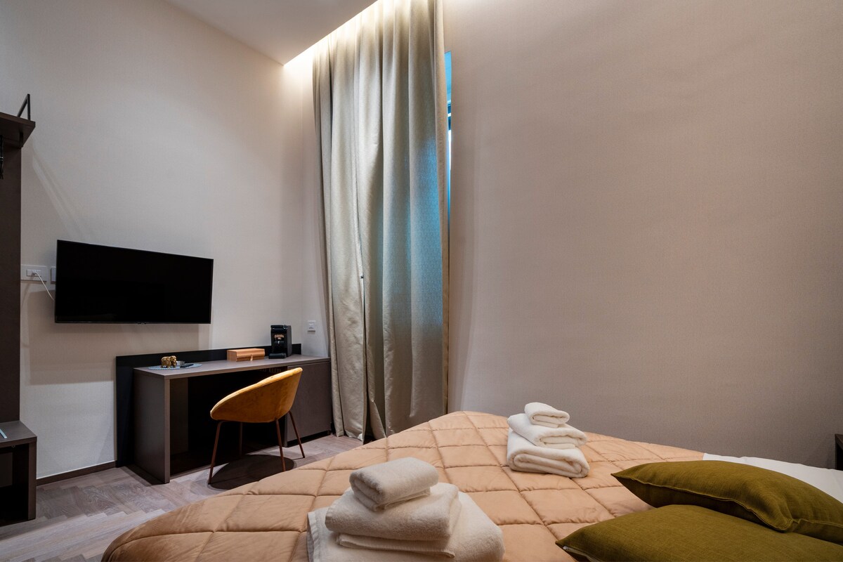Experience the allure of Bari from Coco - Elegance Boudoir at City Gate - Luxury Central. This luxury aparthotel room, nestled in the heart of Bari, combines comfort, elegance, and Italian charm. With its prime location, ensuite bathroom with massaging shower, bespoke amenities, and an artistic ode to Coco, our muse, it's more than a stay - it's a story. Enjoy a personalized Bari guide, ensuring an unforgettable, tailored journey through this historic city.