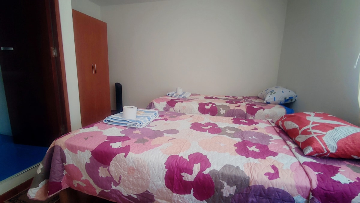 Family room, 2 adults, 1 teenage child or 2 children under 6, with private bathroom, cable TV and 5G WiFi. We are located half a block from the municipal market, pharmacies, restaurants, pollerias and 3 blocks from the start of the beach circuit.