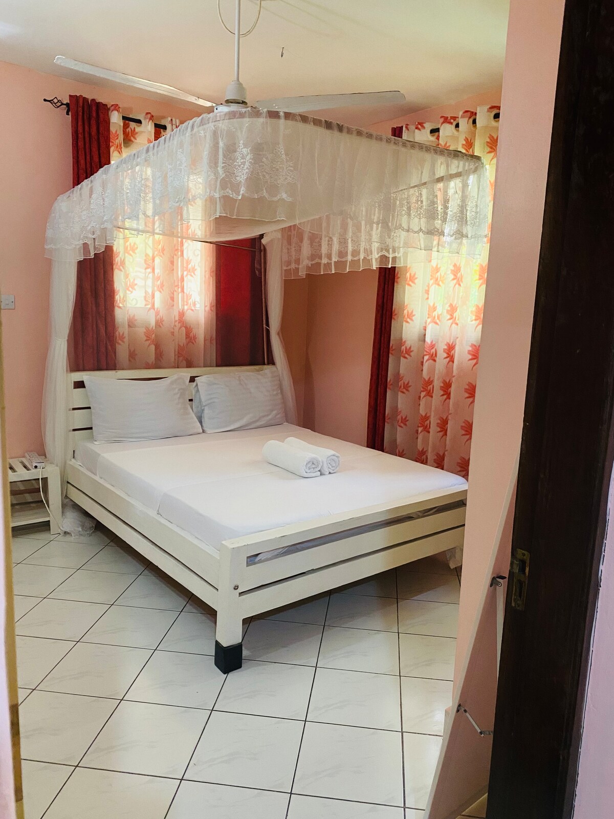 Welcome to Vale Residence – a modern 1-bedroom apartment in the heart of Nyali, Mombasa. Just 5 minutes from the beach, it’s perfect for beach lovers, families, friends, or remote workers. Enjoy AC and fans in every room, fast Wi-Fi, a fully equipped kitchen, and secure parking. Walk to top restaurants, malls, and nightlife. Your ideal coastal getaway awaits! NOTE: The apartment does not have a lift and the client is to replenish electricity tokens as he or she uses.