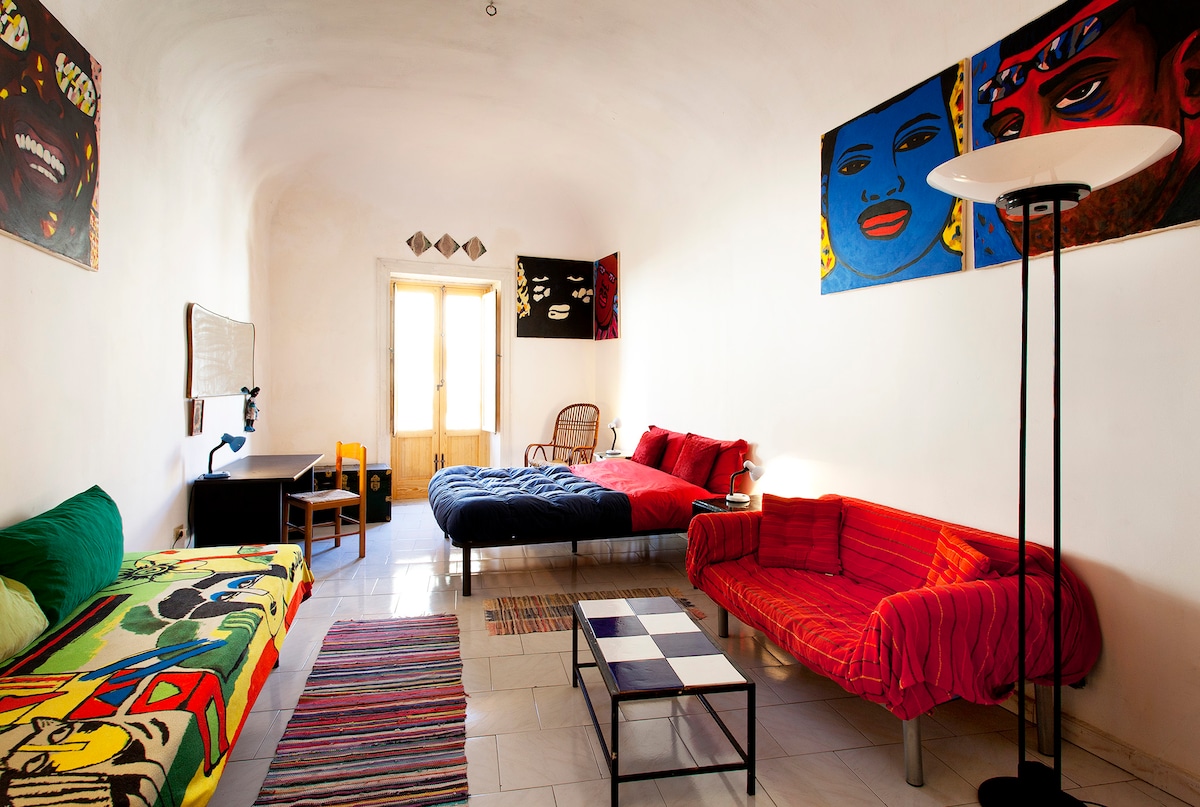 Artepalermo is a Bed and Breakfast apartment in the heart of the historic centre of Palermo, on the top floor of an old, renovated house, without elevator and surrounded by lanes, churches, markets, washing, squares and terraces. You will live in the house of an artist and you can visit her studio. Your room is more than 25 square metres, it has a double and a single bed, a sofa, a bureau and a balcony. There is a shared sitting room, a shared dining room, a roof terrace, another atmospheric little terrace and a kitchen where you can also cook. You will have a private bathroom, but it is not in the room itself. The furniture and the style of the apartment are basic with an artistic touch. There is free quick unlimited internet( fibre). As we are really in the heart of the centre you can walk within a few minutes to the food markets, supermarkets, flea markets, shops, restaurants, musea, port and parcs. it is less than 5 minutes walking to the sea! The centrale train station is at 10 minutes walking. In case you arrive by car (but you don't need it in Palermo) : you are not allowed to go into the historic centre without a special pass ( the ZTL), but you can park on the Foro Italico (near Porta Felice is the nearest). If somebody asks you money, give him maximum 1 or 2 euros. We are a Dutch woman, a Tunisian man and a Sicilian dog We speak English, Italian, French, German, Spanish, Portuguese, Dutch and Arabic.