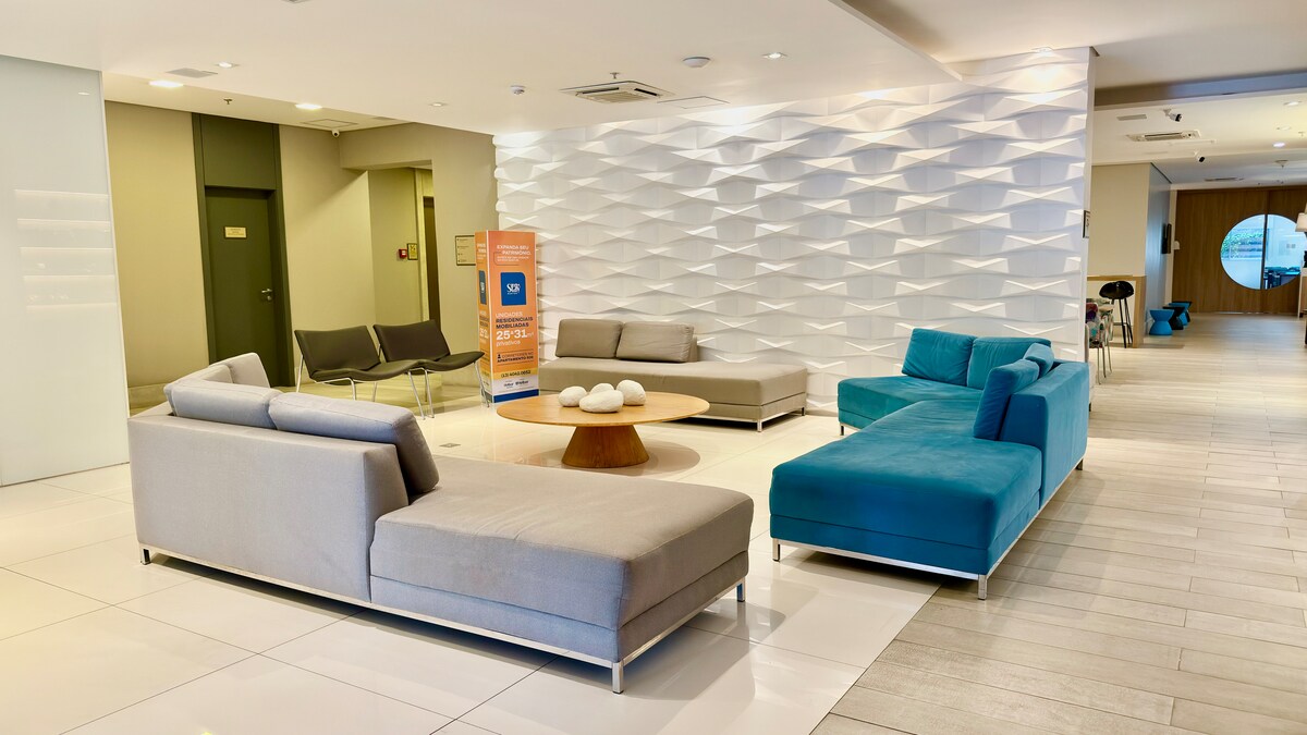 This 55m² apartment is ideal for couples and executives on business trips. It has everything you'd expect from an apartment: practicality and technology. For those coming to spend New Year's Eve in Santos, you can enjoy the festivities without even leaving the building. From the pool area, you can enjoy the sea view, the fireworks, and the city's festive atmosphere without having to deal with traffic, crowds, or a tiring commute after the fireworks.