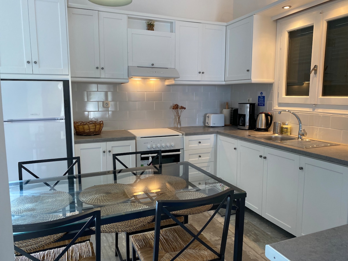 The house was made in 1862 and is 10 minutes by foot from the main port of Spetses and 12 minutes from the old harbour, where all the restaurants clubs and bars thrive of night life. The neighborhood is quite and the tall stone wall around the house provides privacy and calmness. Recently renovated inside has in front a beautiful garden with a barbeque and a comfortable traditional dining area where you can enjoy peaceful moments. Kitchen is fully equipped and we provide washing -drying machine