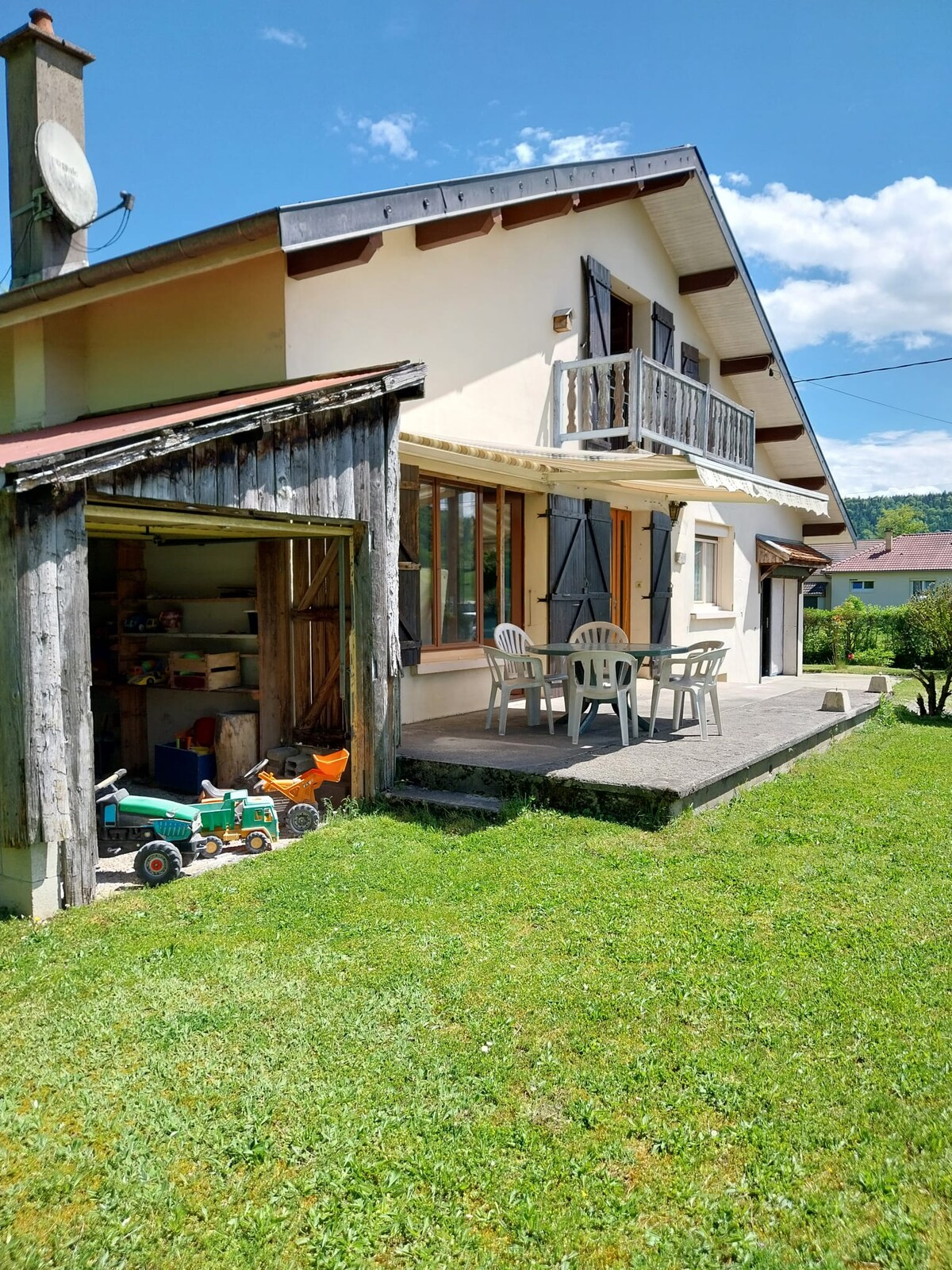 Old farm located 5 minutes by car from Lake Chalain. A bike path can also take you to the lake.+The studio is close to the Hérisson Waterfalls, Pertes de L'Ain, Billaude Waterfall, Château Chalon village, Baume les Messieurs circus... The Ain River is 1 kilometer away. (Peaceful place to rest). You can park right in front of your accommodation and eat outside. Garden furniture is available.