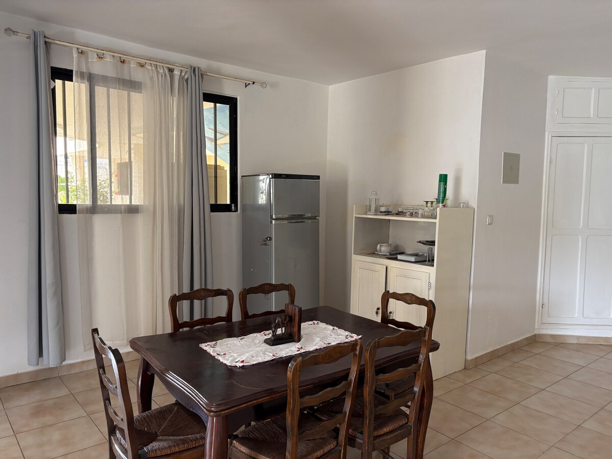 A 40 m² studio located beneath the Sahoty Residence, offering a bright and spacious living area. It includes a large bed and a fully equipped kitchenette with a stove, plates, pots, and cutlery. The studio also features a living room, a dining area, and a bathroom, it is equipped with starlink high speed WiFi. You'll enjoy a stunning views of the sea and pool. The landscaped garden, complete with thatched huts, provides an ideal setting for relaxation.