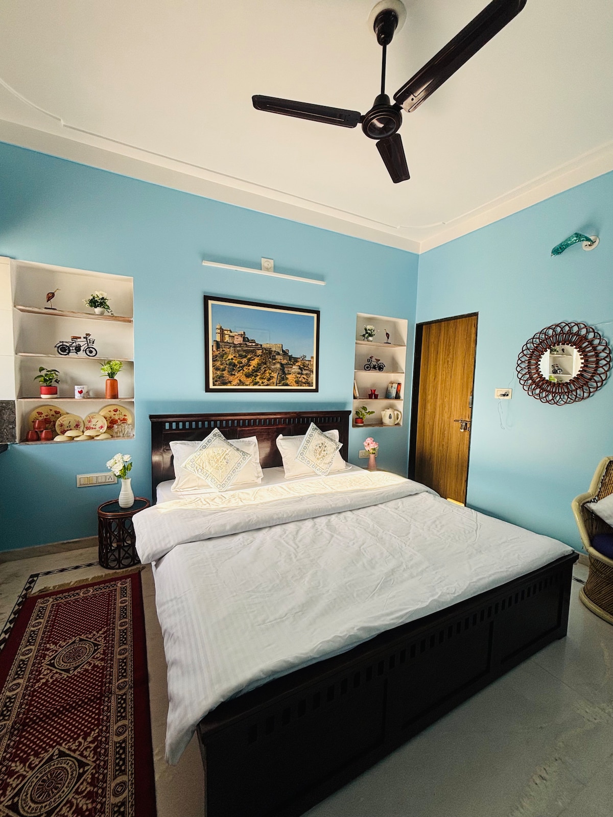 ⭐️ Do checkout our new listings near Fatehsagar Lake. Better rooms & amenities. Experience bohemian charm in our home near Fatehsagar Lake, nestled in a quiet residential area just 15 min from Udaipur's city center. ✅ Amazon FireStickTV - (Prime Included) ✅ 1km away from Fatehsagar Lake ✅ All Major attractions just 15-20 Min away ✅ Daily Cleaning ✅ Towels/Shampoo/Body Wash ✅ Power Backup Inverters ✅ Fully Functional Kitchen ✅ Refrigerator ✅ Water Purifier RO ✅ Fast Internet Wifi ✅ Iron