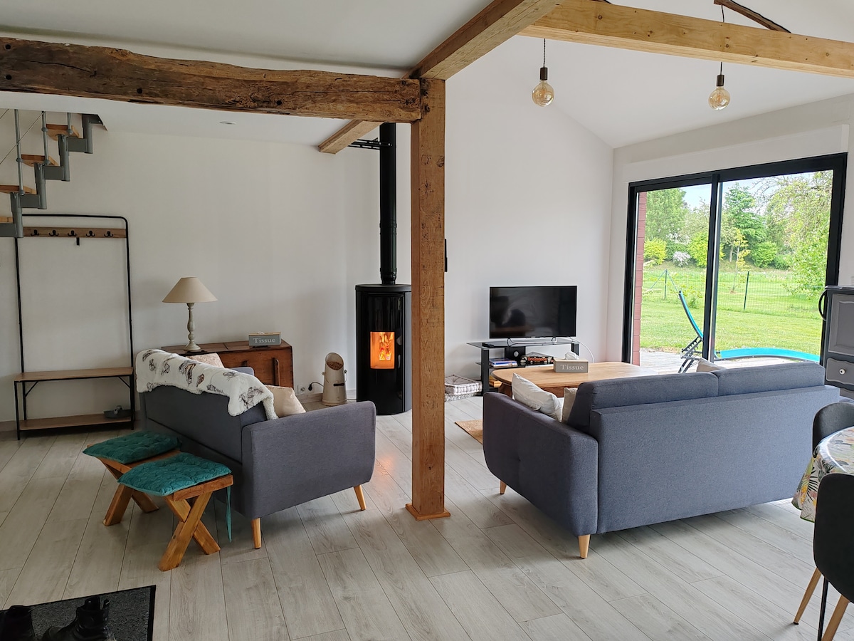 Charming old half-timbered bread oven, located on the edge of the stream, it consists of: - Living room with a wood-burning stove, - Kitchen, - Upstairs: - shower/WC room accessible by a miller ladder (see photos), -bedroom with a 160 x 200 bed overlooking the stream, accessible by a miller ladder (see photos), Bedroom and bathroom do not communicate. Garden furniture, BBQ, private parking, firewood included Note: another cottage, the Stone House, is 100 m away