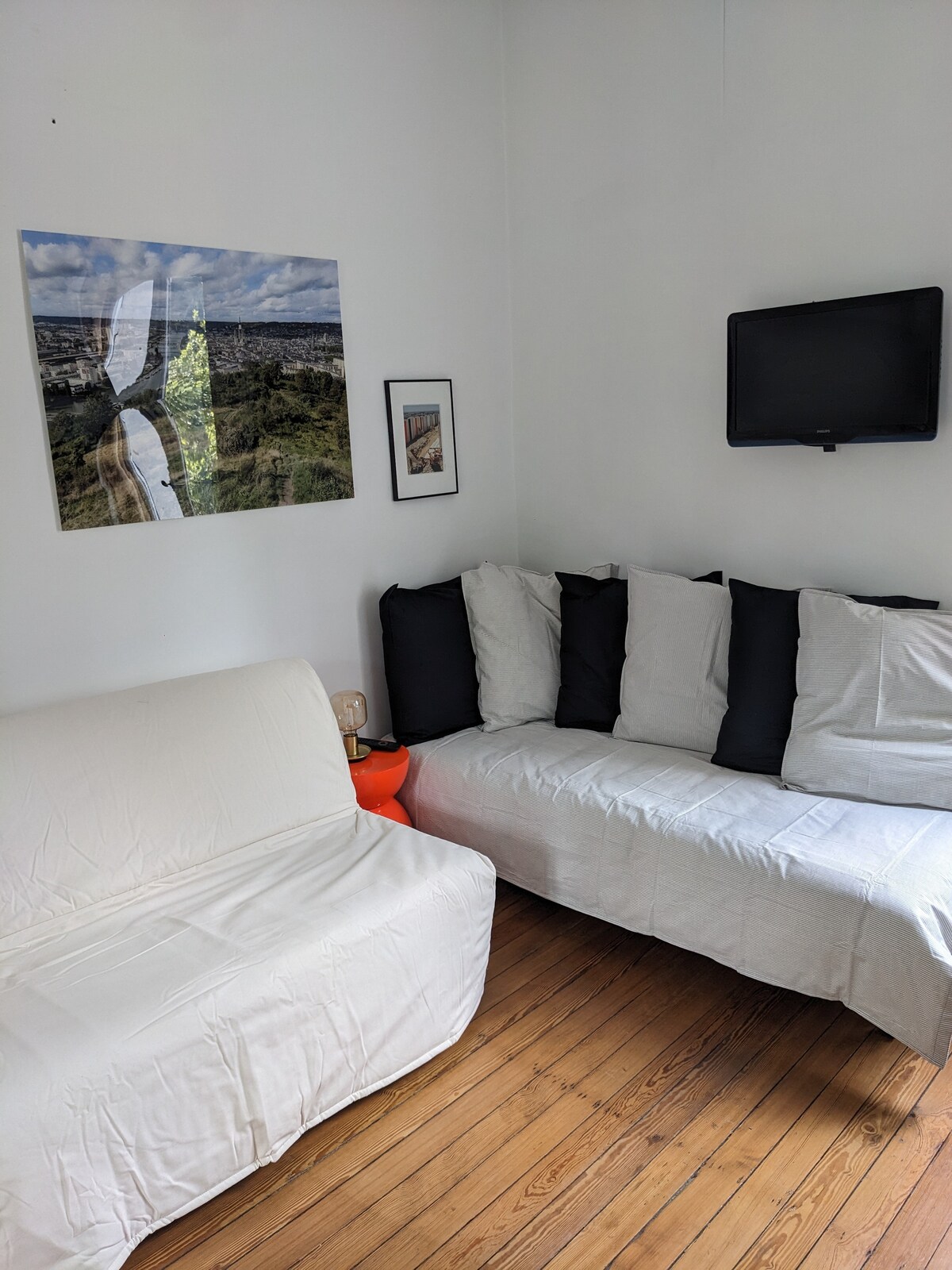 Charming, spacious, completely renovated and south-facing apartment with panoramic views of west Rouen. Equipped kitchen and Senseo. 160 x 200 bed. Garden and wooden terrace with deckchairs, quiet with nothing overlooking it. Train station 2 km away. Parking. Bus nearby with the F2 or F7 in 5 minutes to the heart of the historic center of Rouen and the Teor 1 in 5 minutes for a walk on the quay. Campus nearby. Shopping mall, bakery and swimming pool within walking distance. Wi-Fi. See you soon with pleasure. Patricia