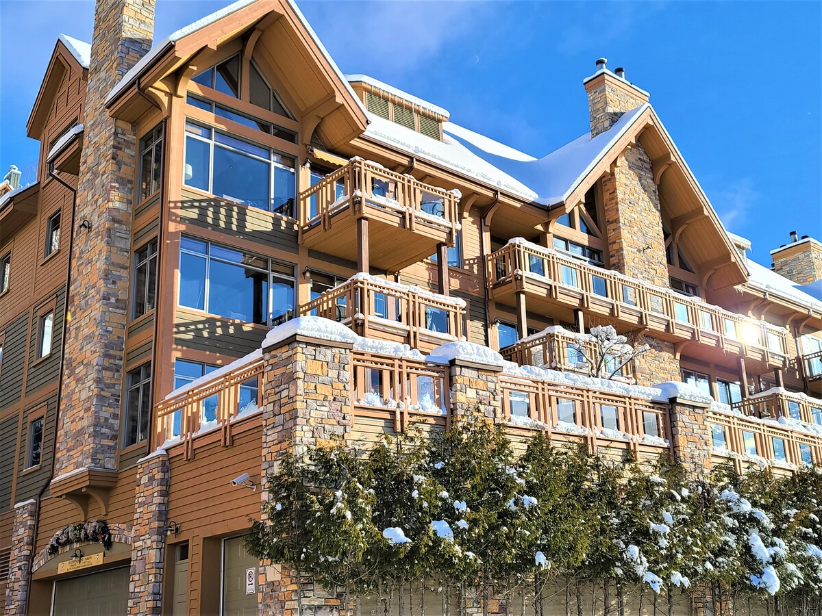 Ski in/out on Plateau trail, shuttle to village, fireplace, heated floors & jetted tub! Great for year round getaways! In the Plateau complex & 10 min walk to Pedestrian Village. The complex has a winter ice rink & seasonal pool. Private & quiet location with the ability to hike & go for walks in nature. Real fireplace, living room AC unit and amazing views from the back deck. Complimentary bus from the condo complex to Pedestrian Village (schedule varies). Quiet and cozy condo.