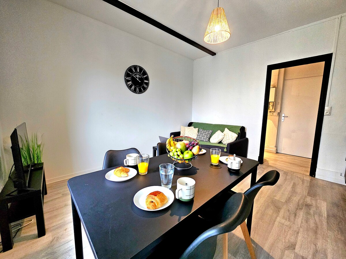 Bright apartment on the second floor of a house with character. It is about a 4-minute walk to the train station. * city center (15-minute walk) or by bus (free shuttle from the train station, every 20 minutes). * possibility of entry with a secure key box. * Numerous buses nearby allowing easy travel in Bourg or the surrounding area. * bike rental station at the train station. * Ethernet cable