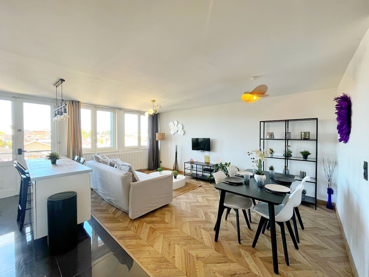 âđ żïžâT4 95 m2 detachedâ villa with Wi-Fi â 3 Bedrooms - very comfortable bedding â3 Bathrooms Self â check-in âLinens and towels included Private âproperty at the gateway to Bourg-en-Bresse Sunny privateâ terrace. âđ żïžLarge parking area secured by an electric gate This accommodation is located on a 1200 m2 fenced courtyard shared with other accommodation. đ đ€©We'll make your stay unforgettable!