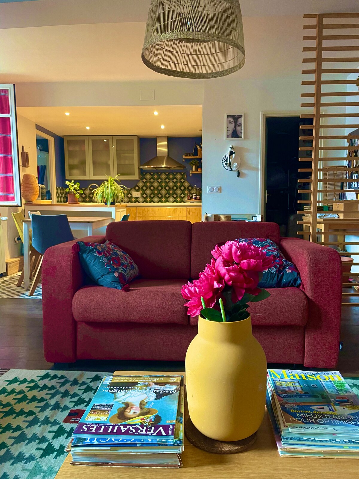 We offer you this superb 67 m2 (T3) charming apartment dating from the 1860s, it will offer you all the comfort you need for your stay. Being on the top floor of the building, you will have a stunning view of the rooftops of Chambéry as well as the town hall. This apartment is ideal for 4 people (2 bedrooms and 2 double beds). The first bedroom is on a mezzanine and the second in a beautiful dovecote. Fiber is installed WiFi / RJ45
