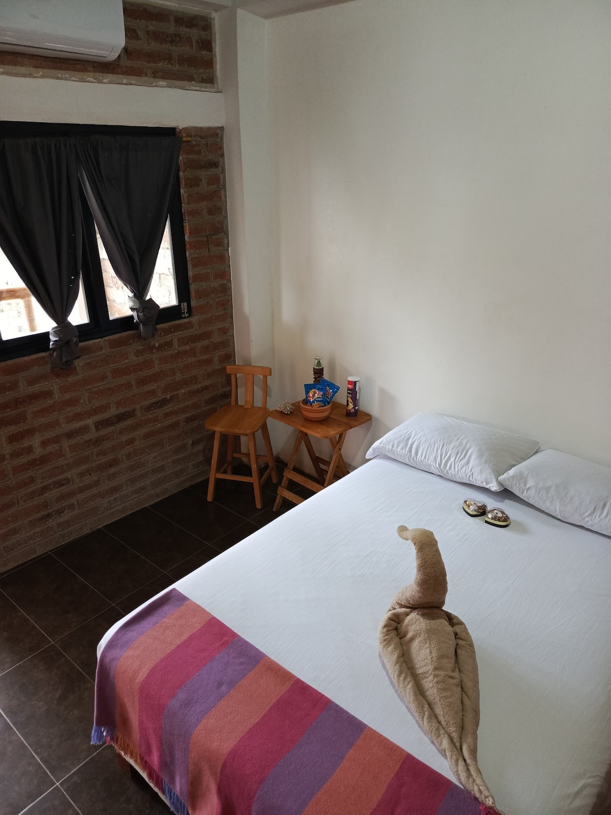 it is a comfortable and safe room, it is not so large it has a 2-seater bed, private bathroom, air conditioning is a room without noise.You have access to the pool and garage.In the space outside there are hammocks and area to take. mountainous high hostel is one block from the beach, a block away from TIA and a 3-minute walk from the village center.