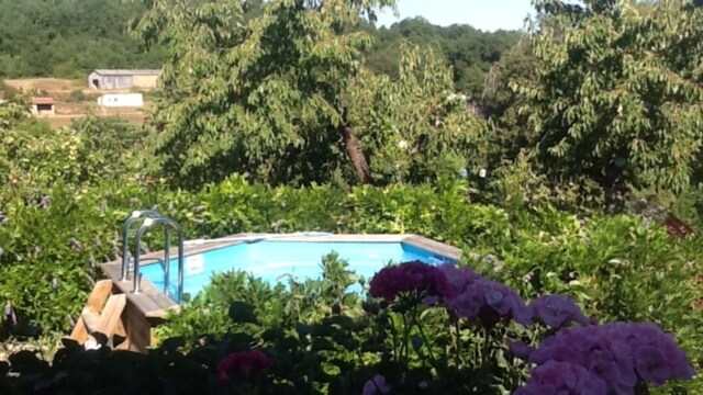 Pretty detached stone house at the end of a small private hamlet in an 8-hectare estate surrounded by nature. The accommodation comprises a bedroom with en-suite bathroom, a living room with wood-burning stove and a well-equipped open-plan kitchen, and a private terrace with views over the countryside. Access to the shared swimming pool (without fence or lock) overlooking the meadow and forest for total relaxation. Please note: in July/August, bookings from Saturday to Saturday only.
