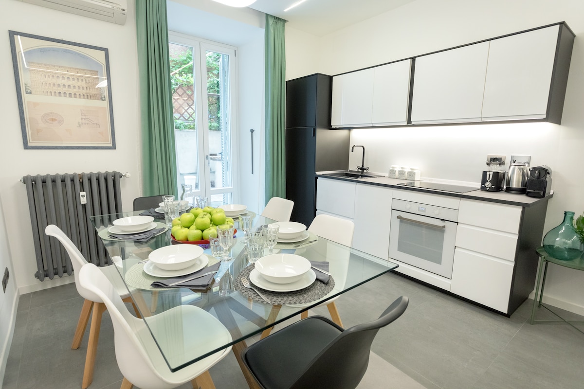 Wake up refreshed in an elegant master bedroom and follow warm wood floors to a kitchen to make espresso in a demitasse. The main attractions and places of interest in Rome are easily reached by walking. This luxurious apartment, is located in the center of Rome, a few steps from St. Peter's Basilica, in an independent building (AT GROUND FLOOR). A supermarket and paid parking are a few steps away