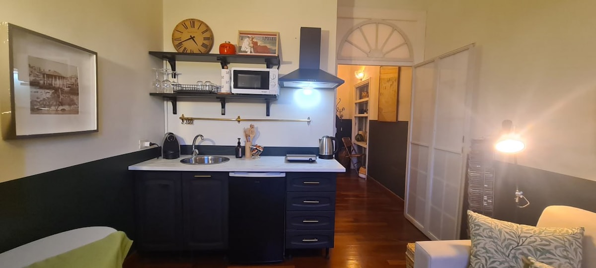 The bright and quiet studio apartment is located on the 4th floor of an 1800 building just 200 meters from the Colosseum. From the balcony, which overlooks the Capitol, you can admire beautiful sunsets over the rooftops of Rome. The studio apartment is centrally located in a typical Old City neighborhood, and it is within walking distance of the city's main sights, including the Colosseum, the Arch of Constantine, the Imperial Forum, the Basilica of Maxentius, and the Palatine Hill.
