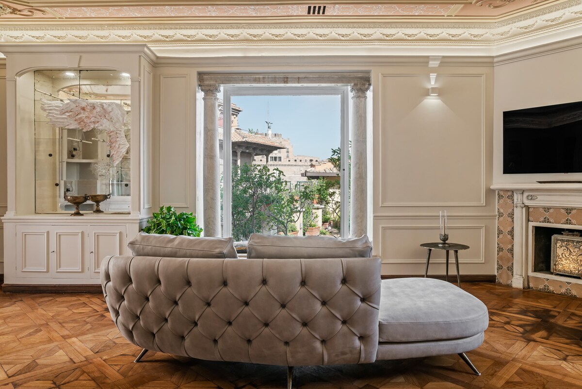 The flat is located in ViaPaola43, a charming historic palace recently renovated and in a perfect location. Just less than 300 meters from Castel Sant’Angelo, and 750 meters from the Vatican and Piazza Navona, this amazing place combines elegant aesthetics with comfort and modern amenities. The icing on the cake? The amazing terrace with a breathtaking view of Castel Sant'Angelo, you will definitely love it!