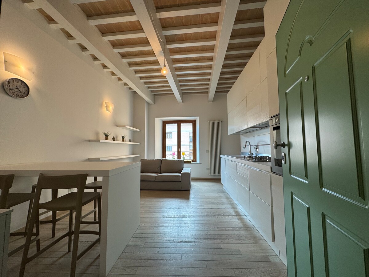 Renovated apartment in the charming historic center, with terrace, private garage + parking space, located outside the limited traffic zone and close to the sea. A short walk from supermarkets, the station, hospital, Rossini Theater - this house is at the center of the main points of interest. Large, bright and cared for in every detail with exposed wooden beam ceilings. Main features: - WiFi -Air conditioning - Smart TV -2 free parking spaces - Fully equipped kitchen -Outdoor terrace -Washing machine/Dryer