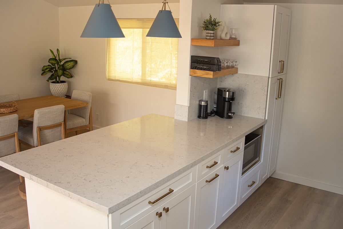 Escape to the enchanting beach town of Summerland, where small-town charm meets coastal elegance. This hidden gem is the ideal spot for a relaxing getaway, offering everything you need to feel at home. Our beautifully remodeled two-bedroom, two-bath home has been thoughtfully designed with a chic, coastal vibe that creates a warm and inviting atmosphere.
