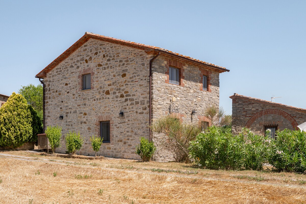 The house is surrounded by dense Mediterranean vegetation and a 1,000 m² garden. The house is equipped with 2 rooms mezzanine ( the ceilings are high about 5 meters ) and was restored preserving the characteristic local stone . Within a radius of about 25-30 km you will find: Citta' della Pieve, Orvieto, Cetona, San Casciano de' Bagni and many more ... In an hour by car you can reach cities such as Florence, Siena, Perugia, Assisi, in addition to Val D'Orcia and Val di Chiana.