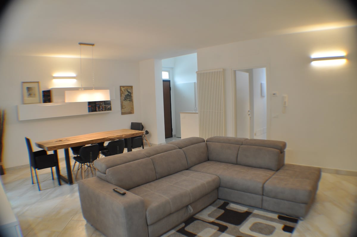 Rilassati in questo elegante e moderno appartamento di recente costruzione, posizione centrale, comodo per girare a piedi tutto il centro storico dispone di una grande vetrata panoramica che permette di ammirare le colline Marchigiane fino al mare con lo sfondo del Monte Conero. La struttura è dotata di ogni confort adatto a soggiorni anche lunghi, posto auto privato con accesso diretto all'appartamento. Dista 20km da casa museo Leopardi, 30 km da Civitanova, 26km dal santuario di Loreto