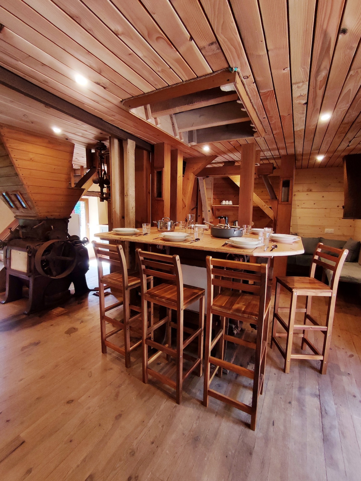 Immerse yourself in agricultural mechanics without getting your hands dirty... This small house will take you on a journey to a mechanical workshop while maintaining modern comforts, as well as an atypical bed with its very pleasant round pendulum bed. The greenery and calm of the Auvergne countryside will allow you to rest, relax, barbecue, play outdoor games, fish and hike.