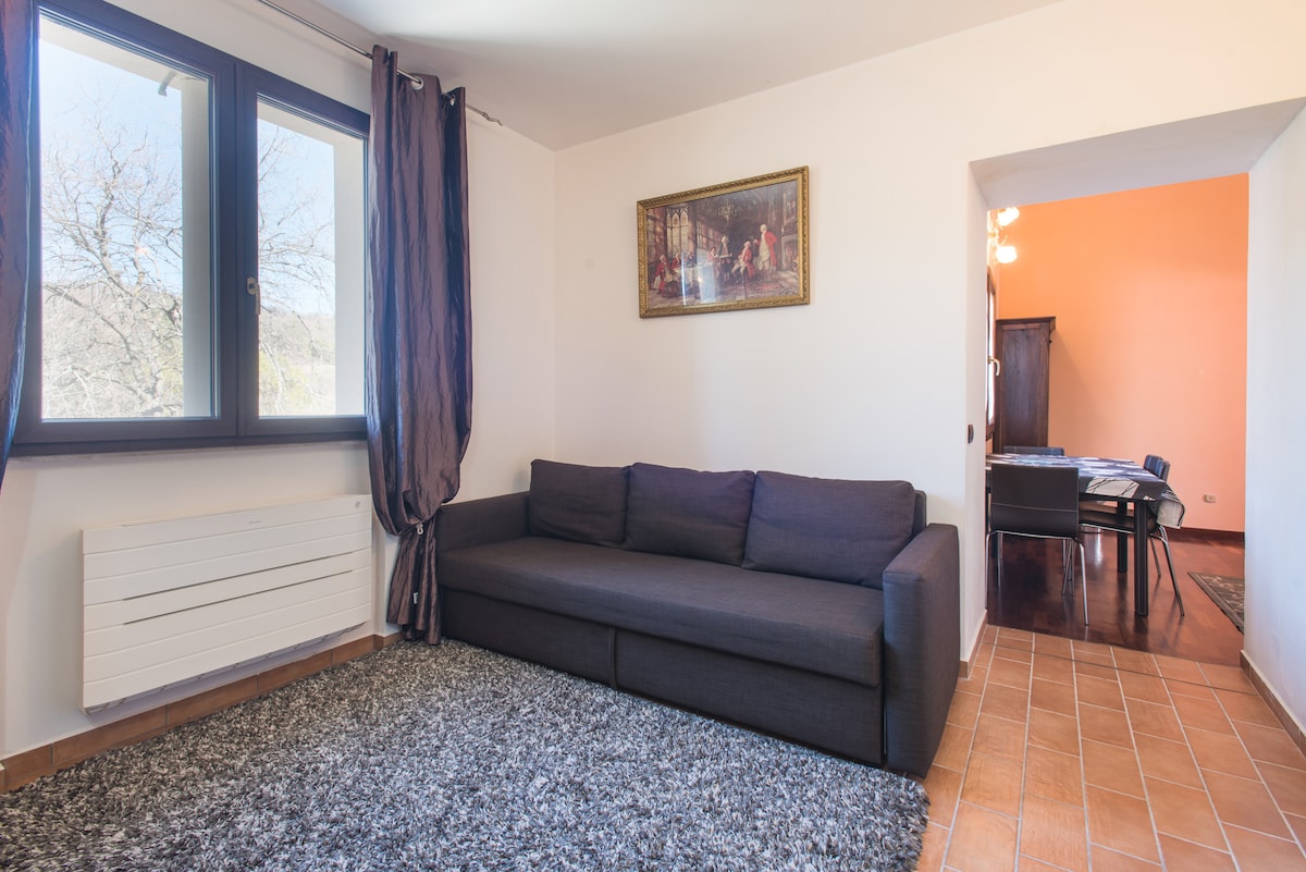 Cozy apartment with garden, perfect for couples or individuals! Located 20 minutes from the sea of Rimini/Riccione and 25 minutes from San Marino and Carpegna, it's ideal for those who love relaxation, hiking and mountain biking. It has a living with an equipped kitchen, a double bedroom, and a bathroom. Heated floors, air conditioning, washing machine, exercise bike and barbecue for maximum comfort. Nearby, farmhouses and suggestive landscapes. Perfect for a nature escape without sacrificing comfort!