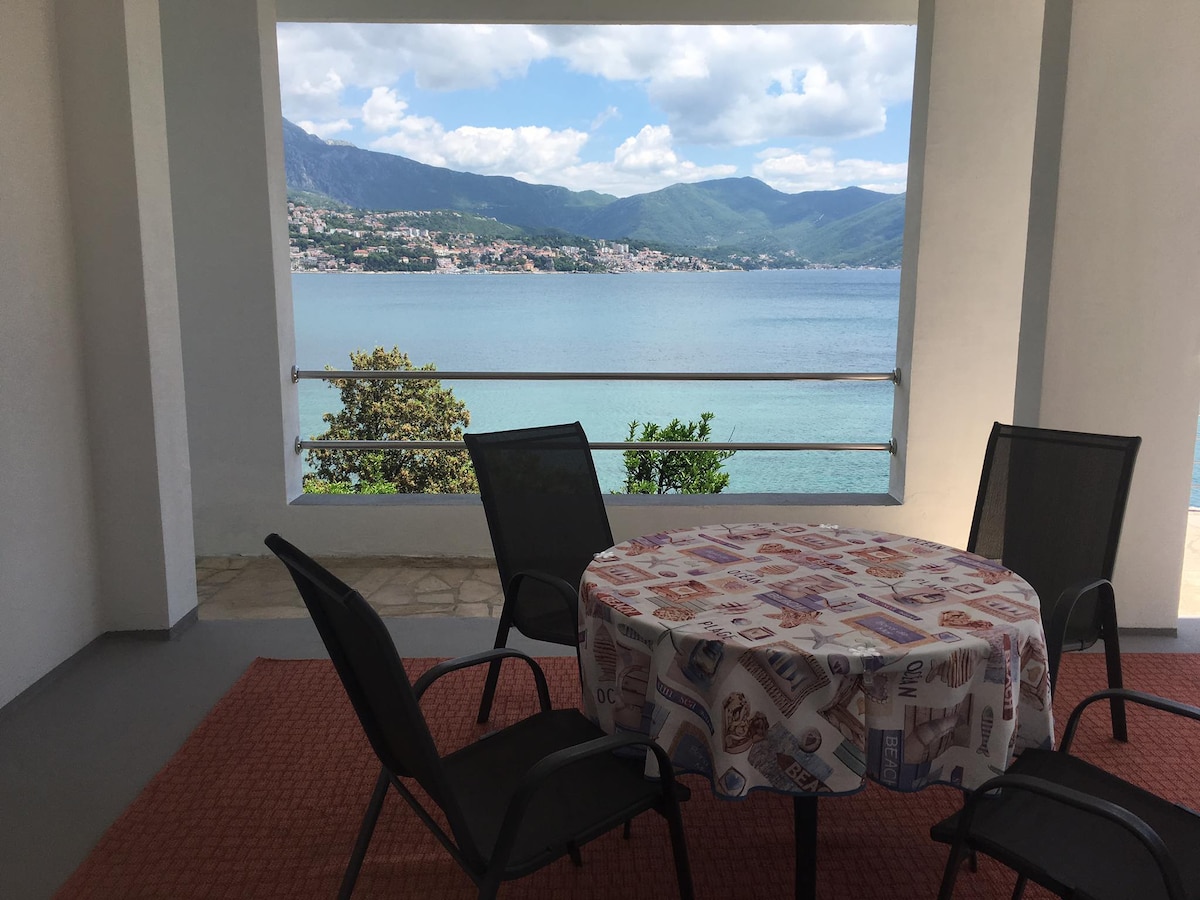 Beautiful apartment with great view on Boka Bay and Kotor. Apartment is modern furnished, has terrace ideal for relaxed stay with great location. Beach is on 50m from object. We are situated on 1.4 km away from Old town;going to Prcanj.Hospital,police and post are 300m away.Banks are in the Old town.Nearest supermarket is 300m away. Airports are on distance of:Tivat-7km,Podgorica-90km ,Cilipi(Croatia)-70km. Welcome , Kotor is living history in a spectacular bay