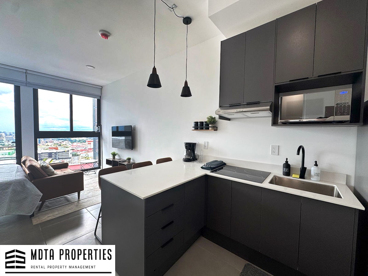 We offer you an apartment with a panoramic view and cool breeze on a18 floor. This modern loft combines style and comfort with an integrated balcony, blackout curtains for added comfort, wifi, and private parking. On the 25th floor we have an infinity pool, iworking area and more. We are located in a safe and central area of Curridabat, where you will have everything at your fingertips. As a Top 10% Super Host in Costa Rica, I guarantee prompt and dedicated attention to make your stay unforgettable.
