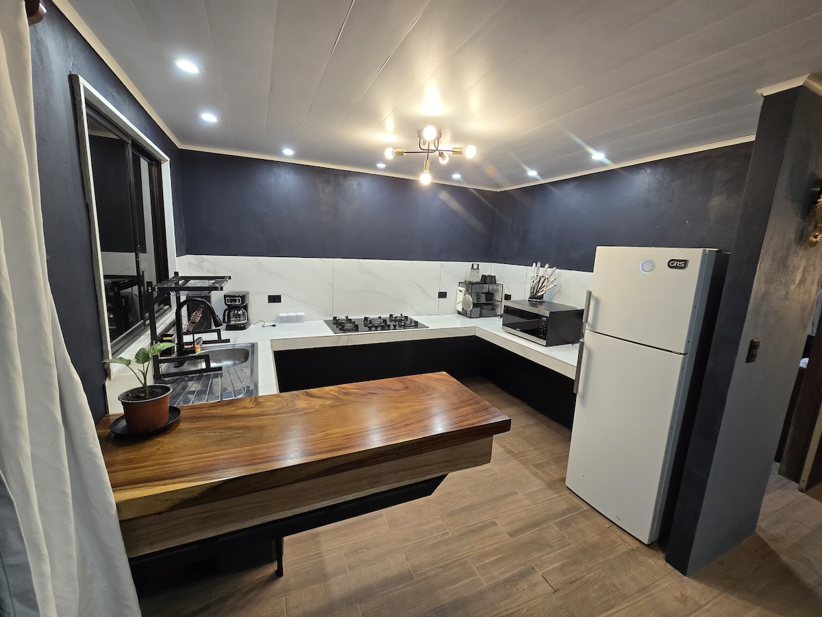 The property is close to the town of Santa Elena, about 20 minutes walking or 5 minutes in a vehicle(A car is recommended). Also The Famous Monteverde Cloud forest and most of the tours are located 10 to 20 minutes away. The house has a fully equipped kitchen, It has 1 bedroom with King size bed. ls an unforgettable place to stay with a Majestic View.