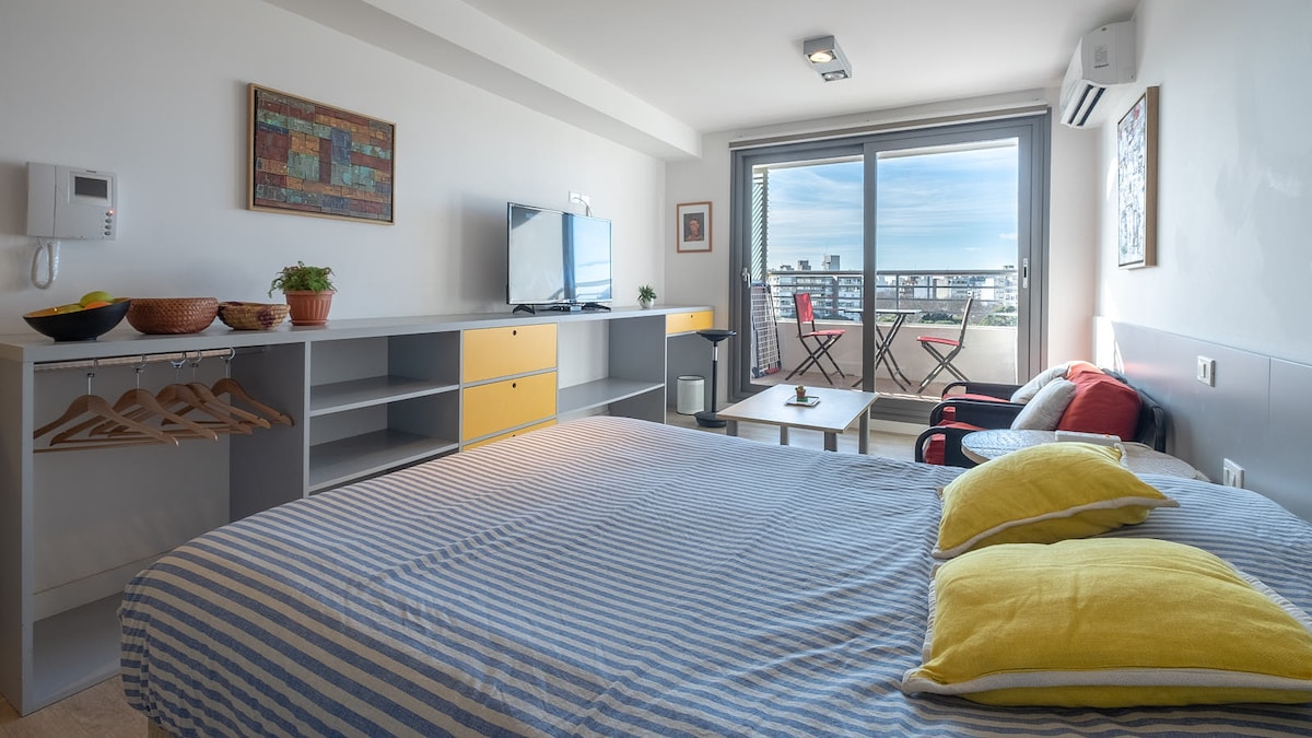 Enjoy the charm of Montevideo in this brand new modern apartment, perfect for solo travelers, couples or business trips. It is located in the heart of the city, close to everything and with a beautiful urban view, contemporary design and all the amenities. The apartment has 24/7 security and is located on one of the city's main avenues. An ideal, comfortable, and functional place for a memorable stay in Montevideo.