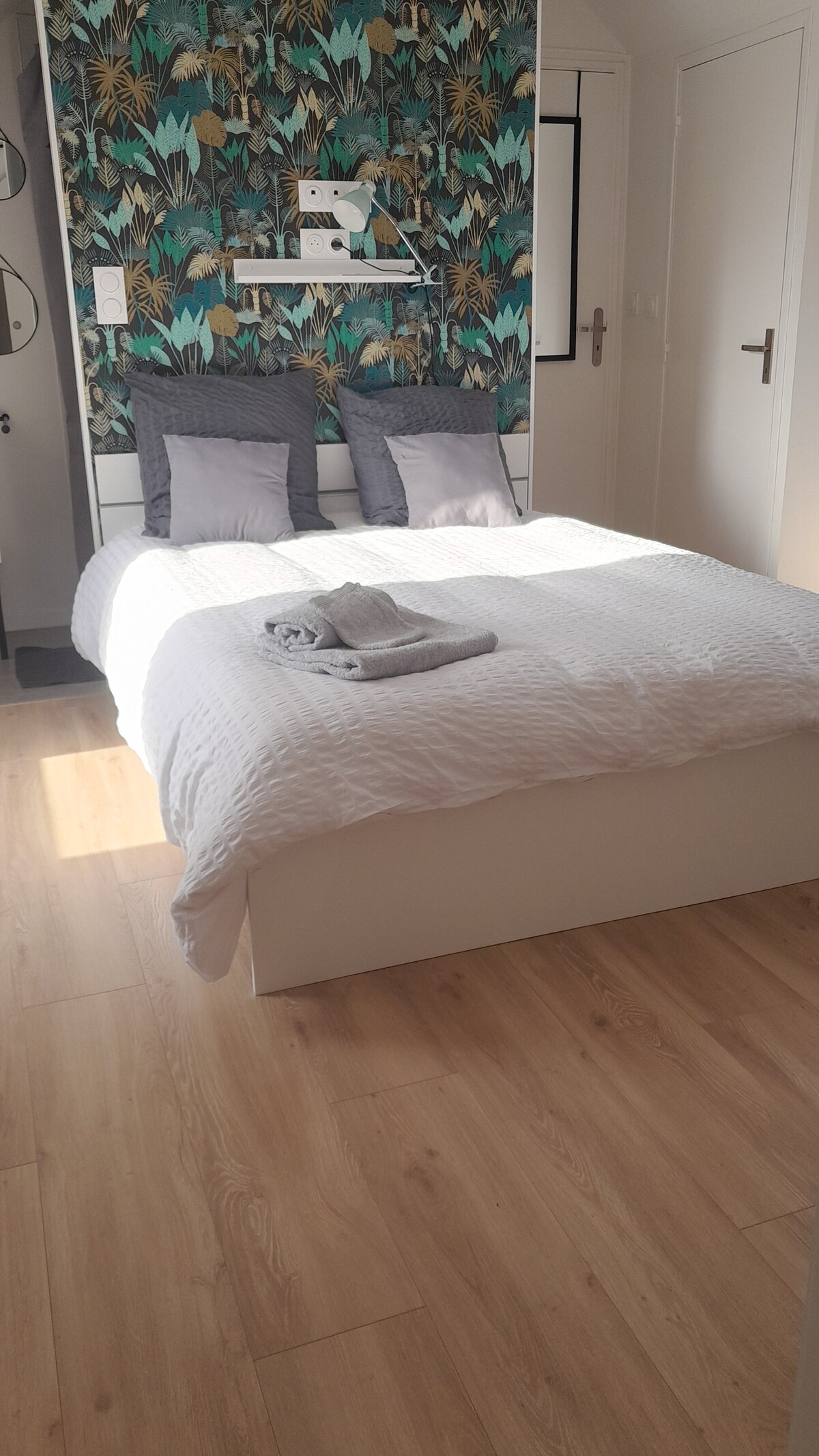We welcome you to this spacious 2-room (56 m2), quiet and bright (south-facing) 2 steps from the countryside. A parking space is reserved for your vehicle at the foot of the accommodation. It is perfectly equipped for short and long stays, vacations or work trips. You can enjoy its terrace on sunny days. Located northwest of Rennes, opposite The Land campus, transport (C4 and line 12) and shops are within a 10-minute walk.