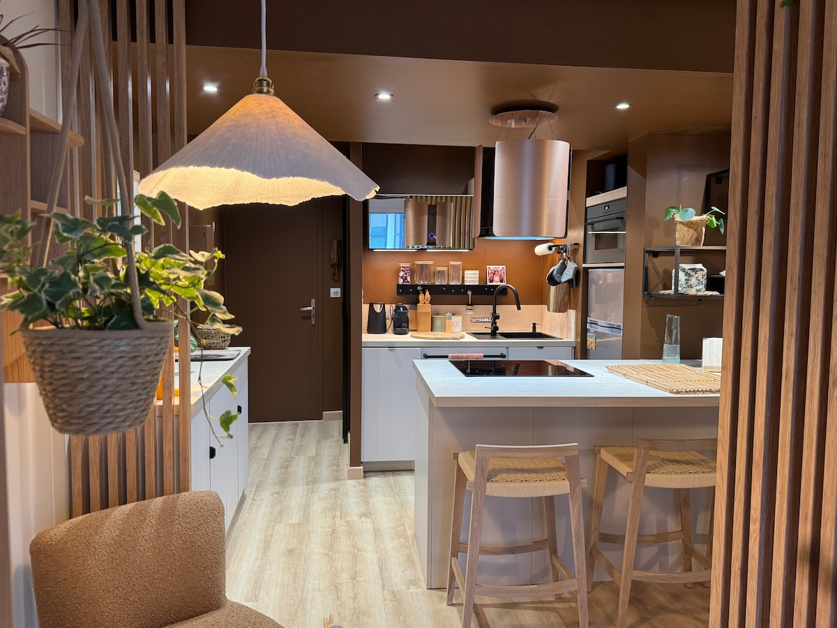 🎯 Rennes city center. 🚶🏻♂️ 3 min walk to bars and restaurants. ❤️ Perfect for a couple's experience. 📐 50m² with Living room + Bedroom + Kitchen. 🚘 Free private parking space. 🖥 High-speed fiber internet. 🖼️ Panoramic view of the city center. 🍜 Fully equipped kitchen, shower room. 🛋️ Living room with sofa, 4K TV, Netflix, YouTube. 👮♂️ 24-hour security in the building.