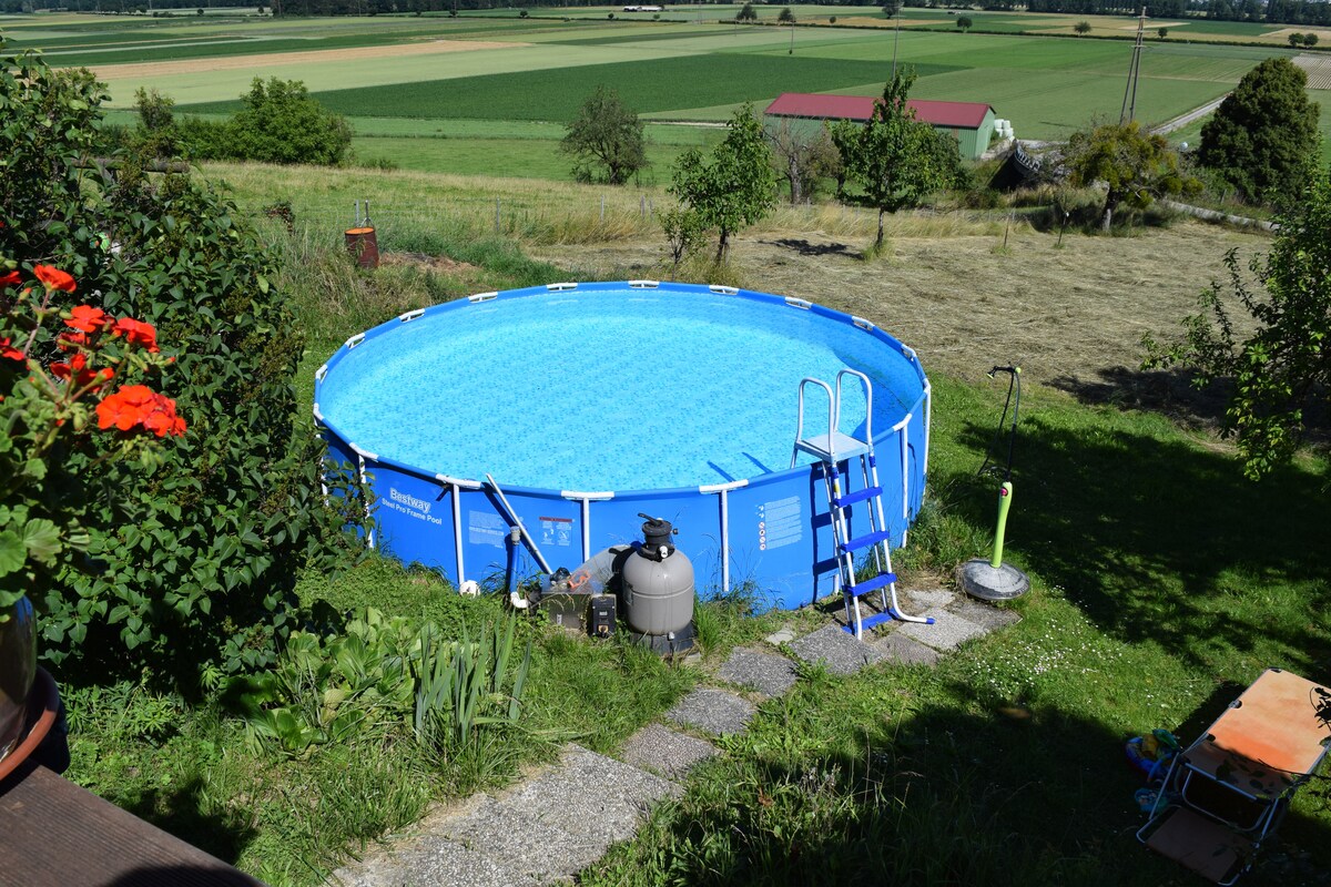 In the Vully, near the lakes of Morat and Neuchâtel, apartment far from the road, overlooking the Alps. Parking space and garden (barbecue), children's games: swings, ping pong, trampoline, swimming pool available. Bathroom with large bath.