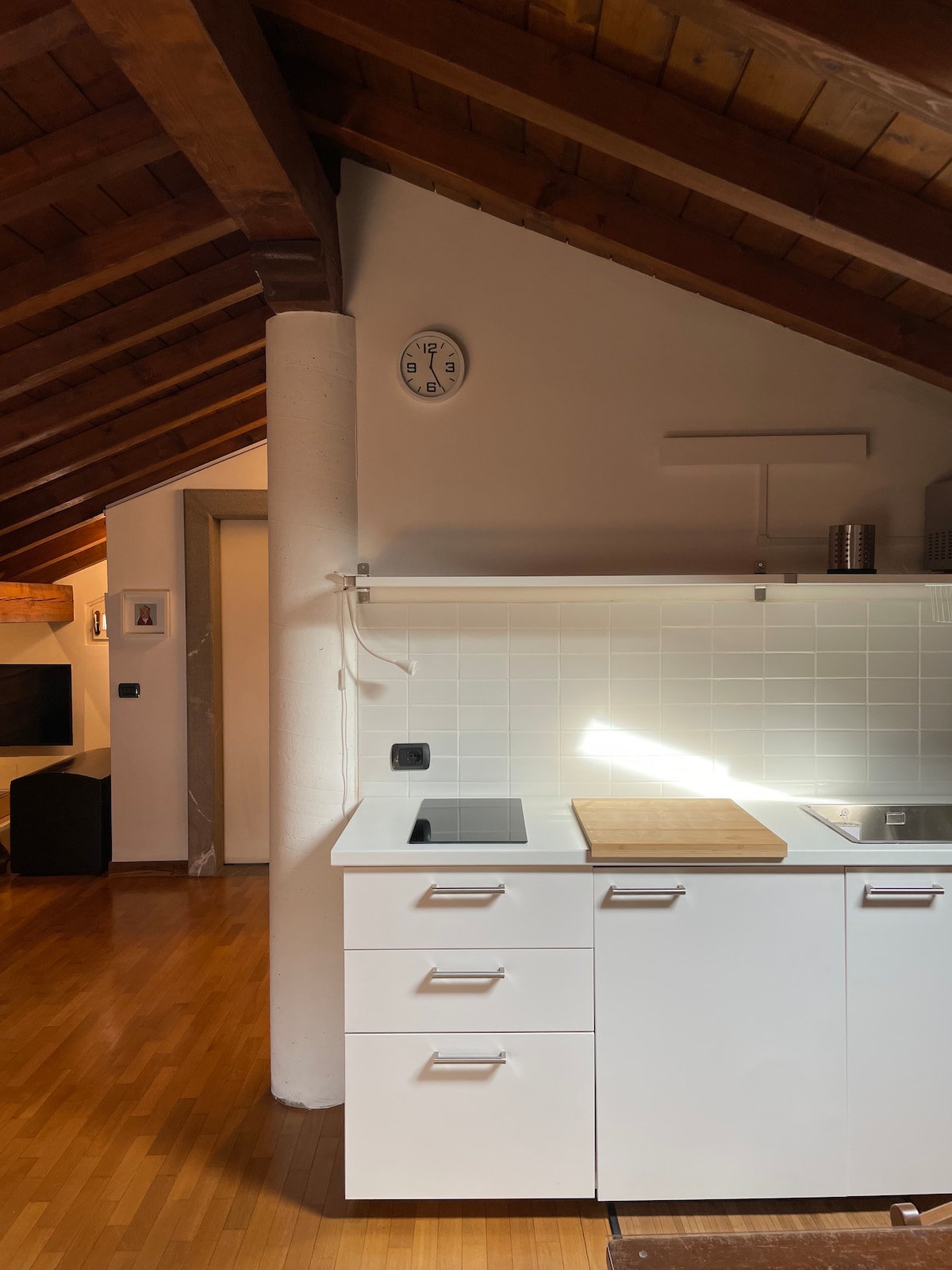 Bright open space a stone's throw from Piazza Duomo that directly overlooks the course of Via XX Settembre. The apartment consists of a first floor with a large living room and dining room, an equipped kitchen, a study corner and a half bathroom. Going up, there is the double bedroom with a king-size bed, a bathroom complete with a whirlpool tub, a shower and, finally, a large walk-in closet.