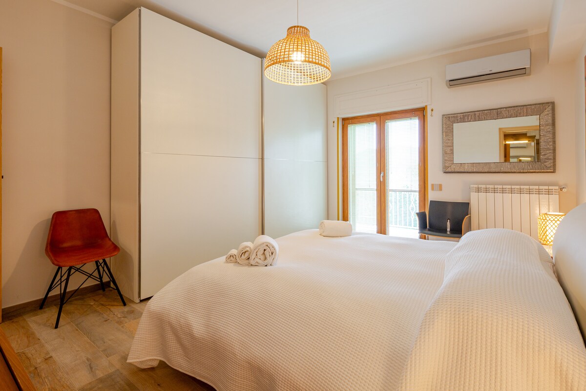 Posizione comoda per raggiungere la Costiera Amalfitana, Salerno, Amalfi, Ravello, Sorrento, Pompei, Paestum, Ischia, Capri e Napoli. Posto Auto riservato interno. Secondo piano con ascensore. Appartamento dotato di aria condizionata (split Samsung 12000 Btu), Wi-Fi e TV in ogni camera Ampia zona living con divano a L, grande schermo con decoder e App TV. Cucina attrezzata con tavolo da pranzo e bancone per colazione. Camera matrimoniale con materasso Memory Foam. Cameretta con doppi letti.
