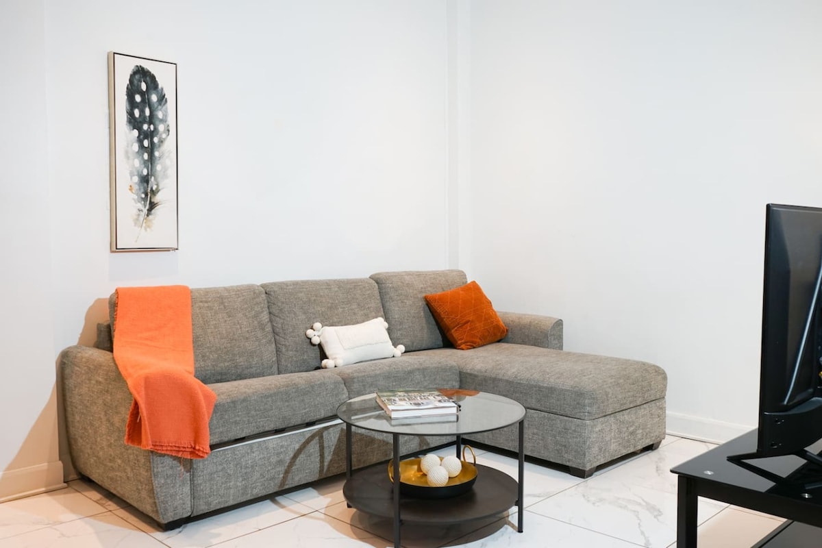 🛏️ Sleep Like a Dream – Plush queen-sized bed with hotel-quality linens. Rest easy after exploring Montreal. 📺 Netflix & Chill Ready – Smart TV with streaming apps. 🚿 Modern & Spotless Bathroom – 🍳 Fully Equipped Kitchen – Save $$ on dining out! Cook like a pro with all the essentials. 🚗 RARE FIND: FREE Parking! –Park for FREE. 🚀 Work & Play – High-speed WiFi + dedicated workspace for digital nomads. ✅ 14 mins to Downtown Montreal – Perfect for concerts, festivals, nightlife!