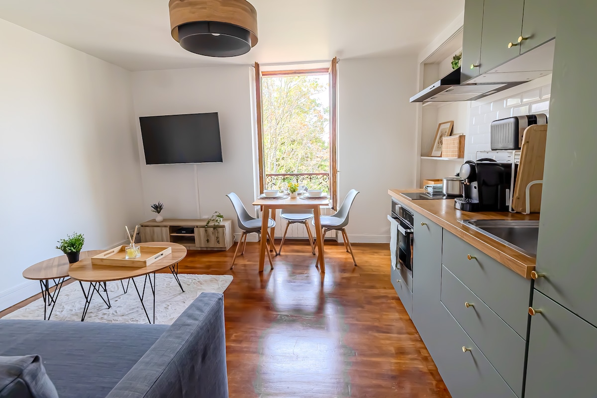 Welcome to the countryside at the Gates of Paris and relax in this quiet and warm accommodation, carefully decorated to become a small Oasis of Serenity! This 42 m2 apartment is located on the ground floor of a 2-story building on a quiet street where you can park for free. It has a private wooded courtyard where you can have breakfast in the sun (weather permitting) before reaching the center of the Capital (Châtelet metro station) in just 30 minutes.