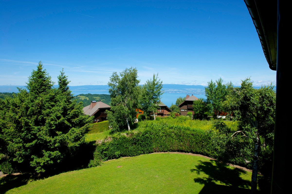 Enjoy with family this fabulous place to stay that offers good times in perspective Apartment in a private residence overlooking Lake Geneva, the apartment is located 400 m from horseback riding, 500 m from tennis club, 3 restaurants not even 5 min walk, 7 min drive from the beach, 11 km from ski resort The sweet and warm atmosphere in our apartment with a magnificent view will allow you to spend pleasant moments. Outdoor parking space near your accommodation.